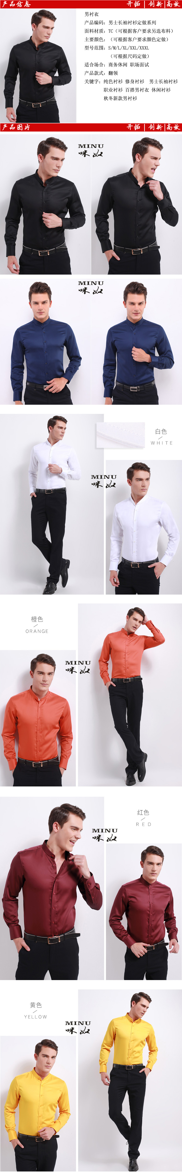 男士修身襯衫 定做襯衫 小方領(lǐng)襯衫